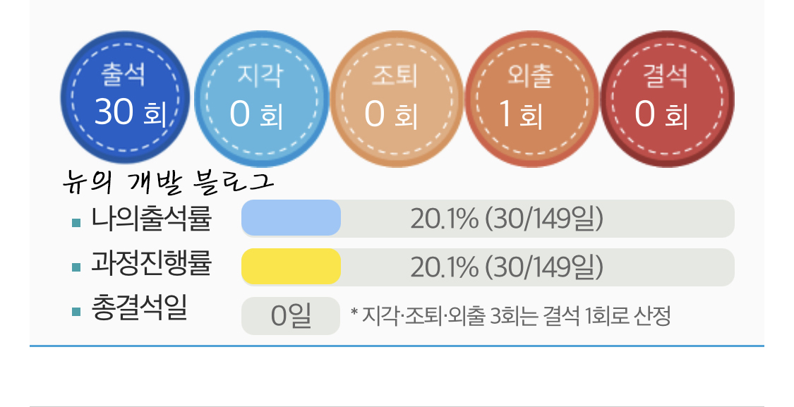 집에서 수업을 들을 수 있어서 편하지만 QR코드를 깜빡하고 찍지 않거나 그러면 저렇게 1교시가 외출처리가 된다ㅠㅠ