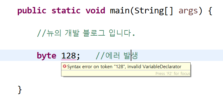 변수의 허용 범위를 벗어난 경우 컴파일 에러가 발생한다.
