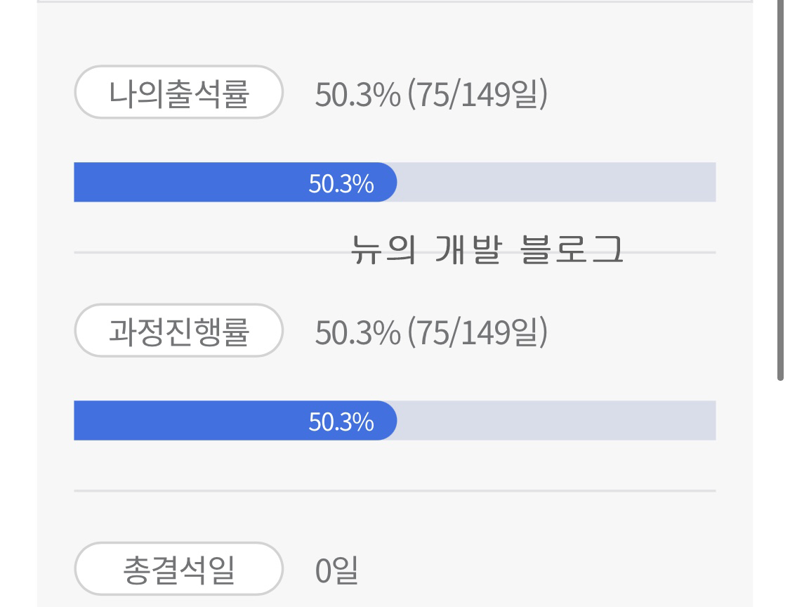 드디어 학원을 수강한지 50% 절반이 됐어요.