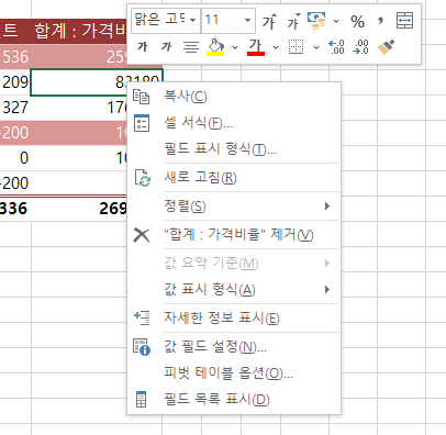 피벗테이블 보고서 에서 자주 출제되는 문제이다.