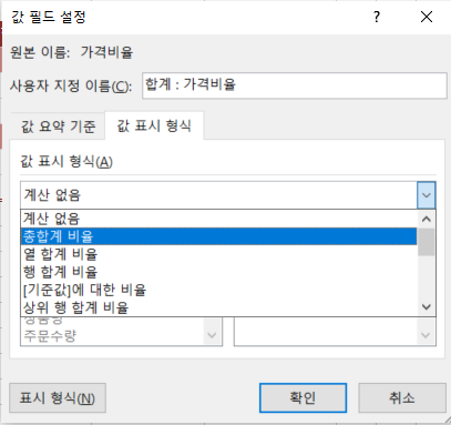 00를 '전체에 대한 비율'로 지정하라는 문제